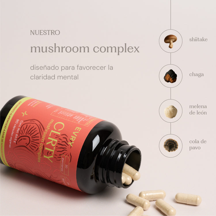 Nuestro suplemento CLRTY apoya la concentración, claridad mental y energía sostenida. La combinación de Lion’s Mane, Hongo Cola de Pavo, Hongo Shiitake y Estearato de magnesio contribuye al rendimiento cognitivo y a mantener un enfoque estable durante todo el día.